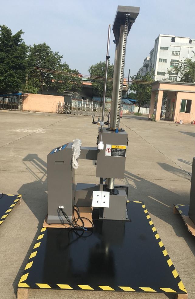 單臂跌落試驗機可對包裝件的面、角、棱作自由跌落試驗,配備數顯高度顯示儀及采用譯碼器進行高度跟蹤,從而能準確地給出產品跌落高度,與預設跌落高度誤差不超過2%或10MM。本機采用單臂雙柱結構,具有電動復位、電控跌落及電動升降裝置,使用方便;緩沖裝置大大的提高了機器使用壽命、平穩性及安全性。單臂設置,可方便地放置產品。